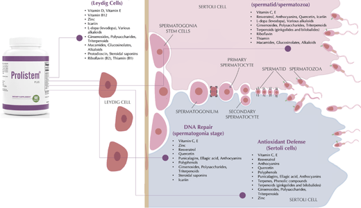 - Prolistem® goes beyond sperm health – it targets the entire sperm production process inside the testis. The active ingredients focus on supporting germ cells, Leydig cells, and Sertoli cells for comprehensive reproductive well-being.