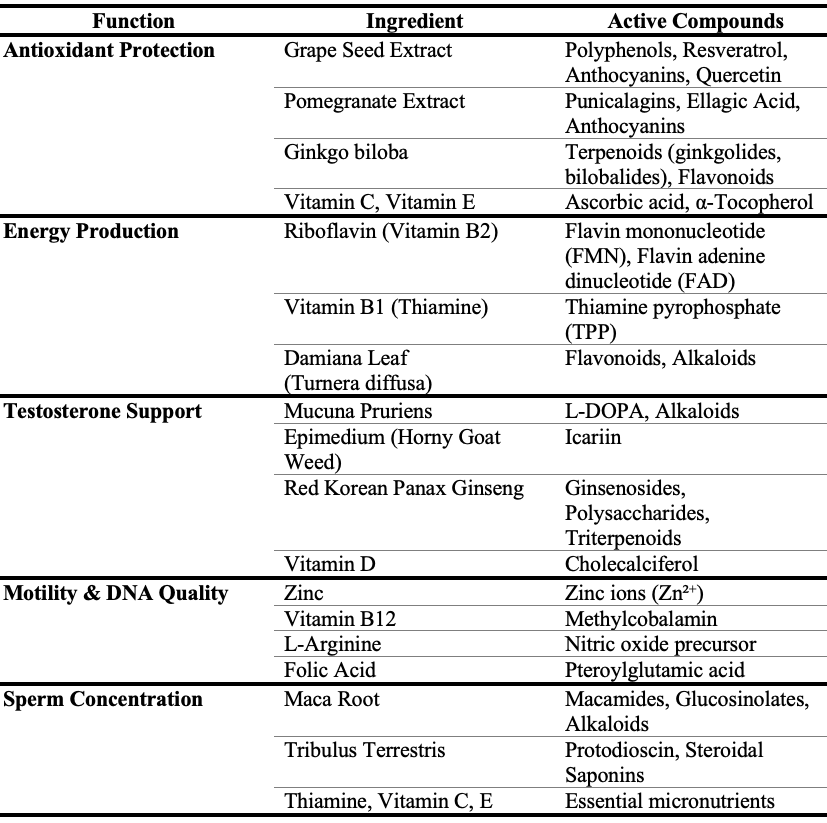 Vitamins A, C, E, and grape seed extract act as powerful antioxidants, protecting fragile sperm cells from free radical damage. Oxidative stress is one of the leading contributors to reduced sperm motility and DNA fragmentation, both critical barriers to conception.